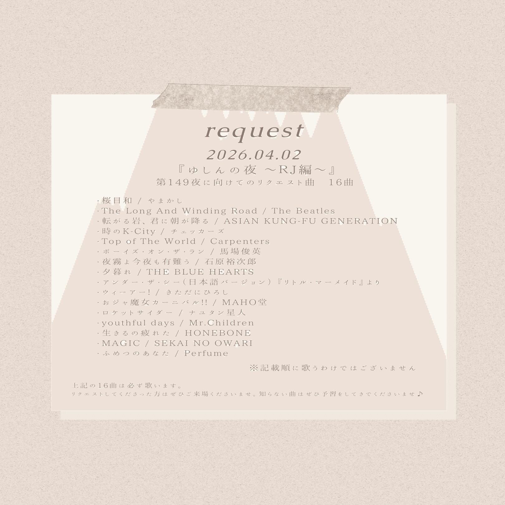 頂いている16曲は必ずやります!